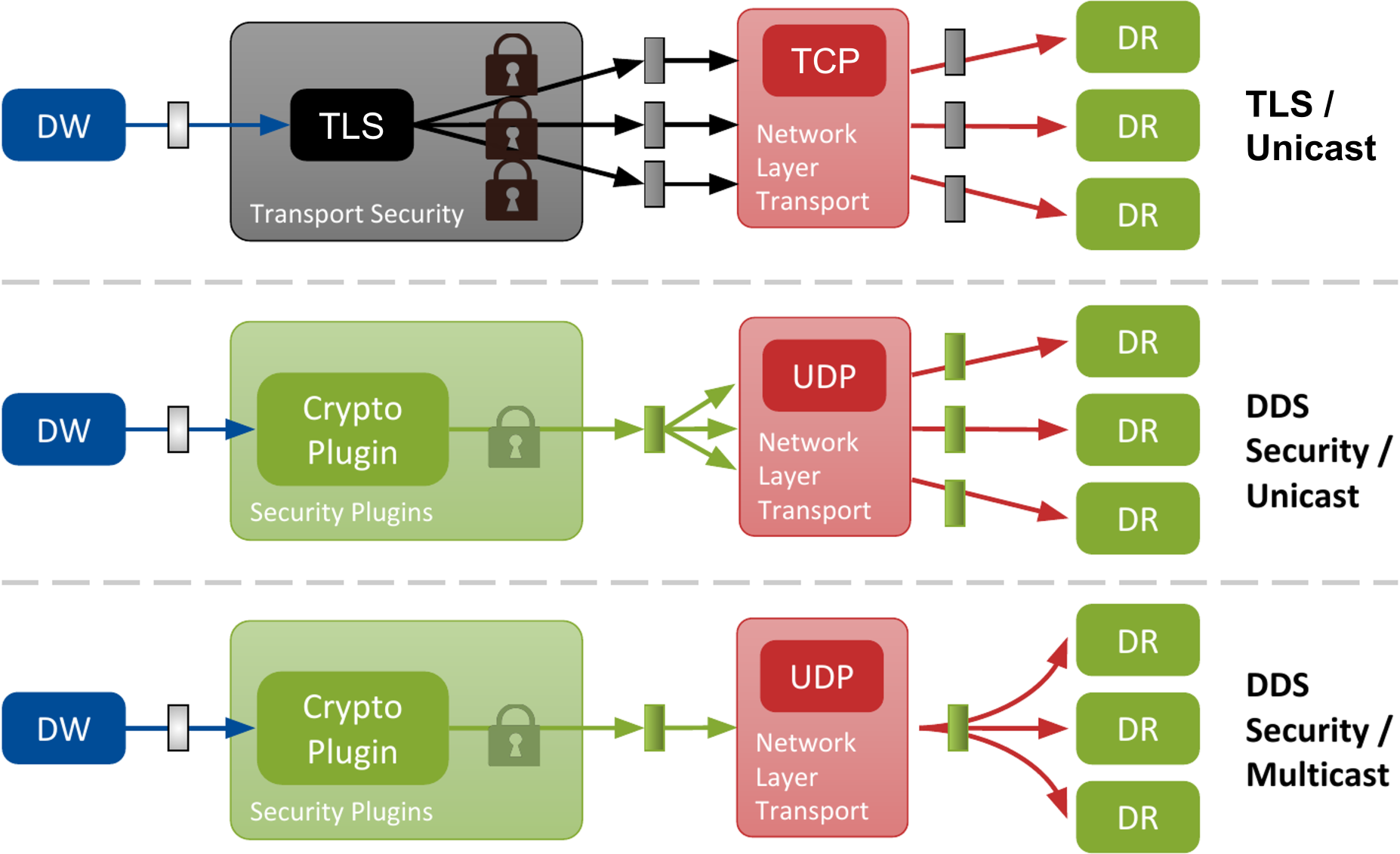 Connext provides two different ways to add CRC to every RTPS message sent. The first one is a legacy CRC mechanism sent on a dedicated, RTI-specific RTPS CRC32 submessage (see WIRE_PROTOCOL QosPolicy (DDS Extension) in the Core Libraries User’s Manual). The second option is defined in the RTPS Specification 2.5 and involves a CRC that is optionally transported on the RTPS Header Extension. Both options enable a recipient of the message to verify its integrity and discard it if corruption is detected. Only the CRC in RTPS Header Extension is compatible with Security Plugins whereas the legacy CRC is not compatible with Security Plugins.