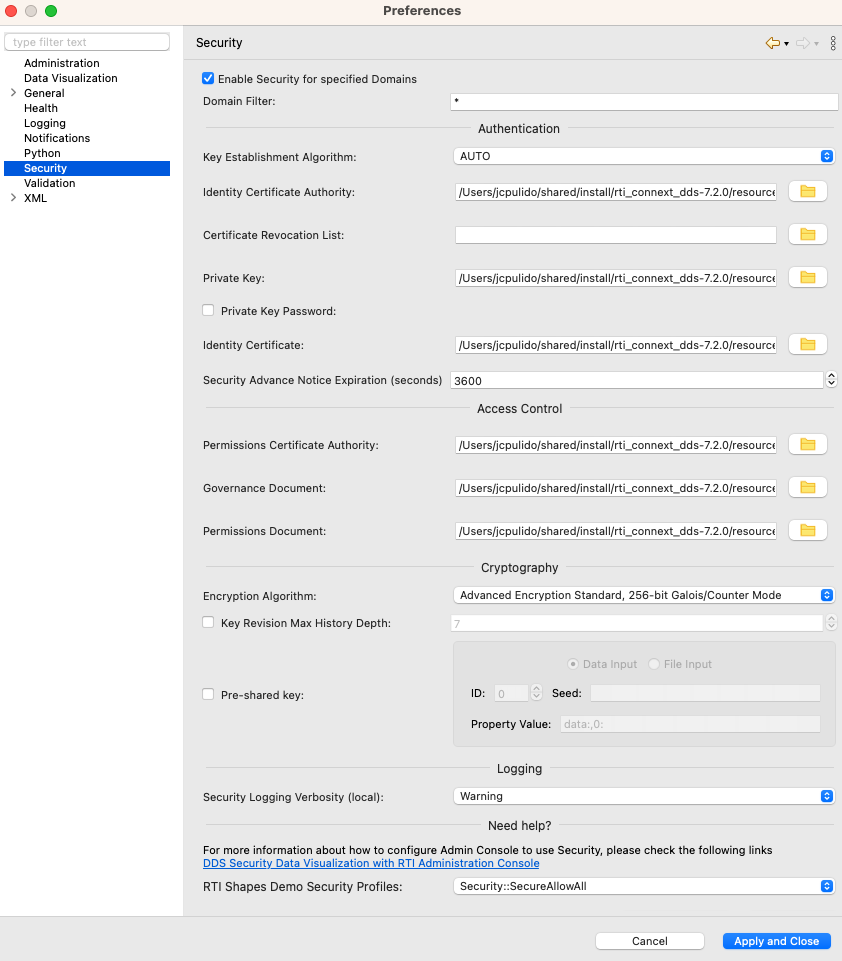 RTI Admin Console is compatible with Security Plugins. Configuring security in