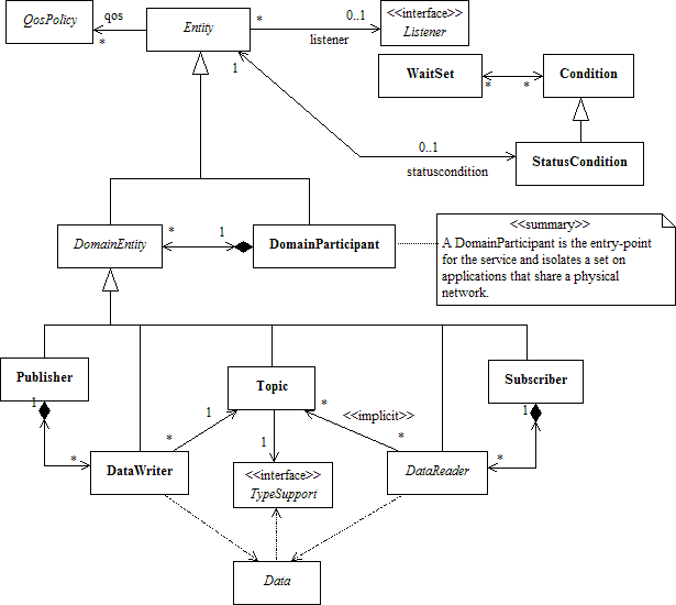 All DCPS entities are attached to a DDS_DomainParticipant. A domain participant represents the local membership of the application in a domain. A domain is a distributed concept that links all the applications able to communicate with each other. It represents a communication plane: only the publishers and the subscribers attached to the same domain may interact.