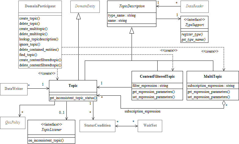 Contains the dds::topic::Topic, dds::topic::ContentFilteredTopic, and MultiTopic classes, the TopicListener interface, and more generally, all that is needed by an application to define dds::topic::Topic objects and attach QoS policies to them.