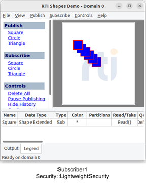- Start a second instance of Shapes Demo using the same profile, Security::LightweightSecurity. We'll call this instance Subscriber1.